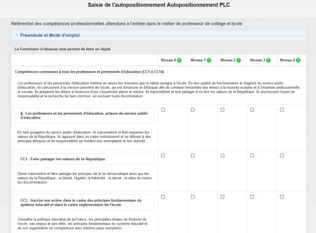 1 formulaire pour le premier degré utilisant le référentiel des compétences : Autopositionnement PE.