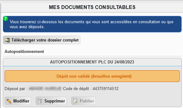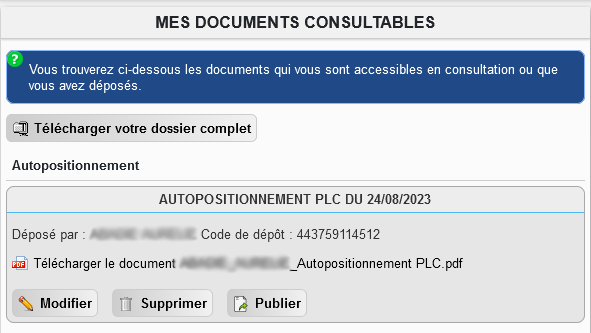 ce qui dépose le document finalisé dans son espace personnel. Il a alors plusieurs options possibles :Écran