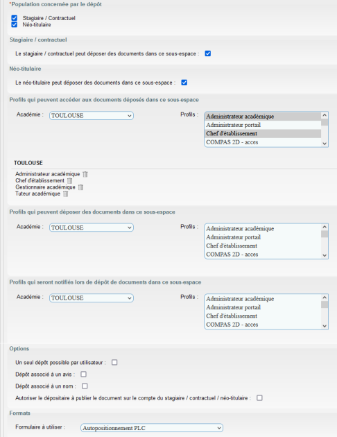 Un sous-espace de document doit être configuré à l'avance par l'ADSI et ce de telle sorte que le stagiaire / néo-titulaire puisse déposer un document dans ce sous-espace (cf. Paramétrage des espaces de documents).