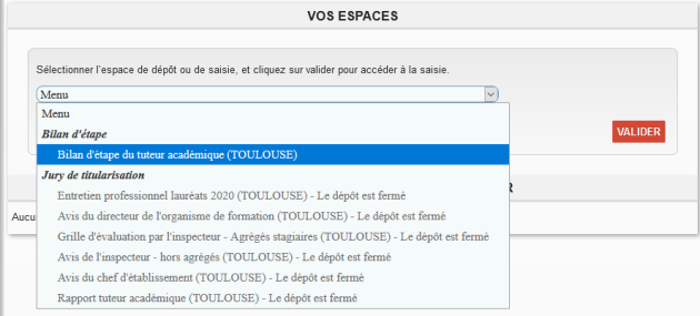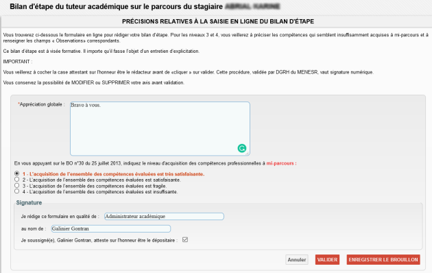 Saisie du Bilan d’étape (Tuteur académique, Tuteur INSPE, Chef d'Etablissement)