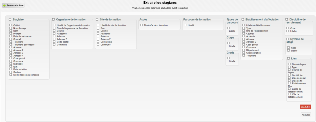 Permet de simuler les stagiaires du Jury selon les critères de sélection saisis, ainsi que d'obtenir au format excel la liste de ceux-ci ainsi que de leurs coordonnées.