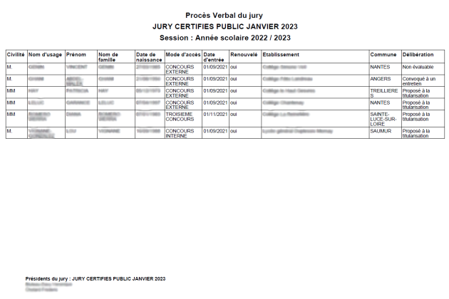 Permet de générer au format PDF le Procès Verbal résumant les propositions du jury pour chaque stagiaire :