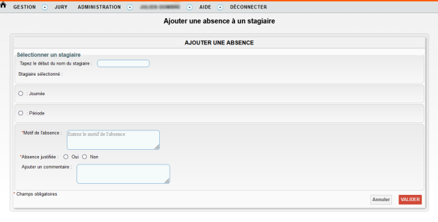 La saisie de ces absences est du ressort du Gestionnaire d'Organisme de formation