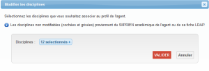 L'ADSI a également la possibilité d'ajouter et de gérer les disciplines pour cet Inspecteur à l'exception de celles provenant de SIIPRIEN / LDAP qui ne sont pas modifiables :
