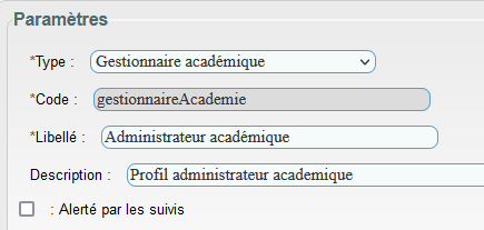 Nom du profil utilisé dans l'application (saisie libre par l'académie).